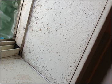 窓や壁を侵食したカビ