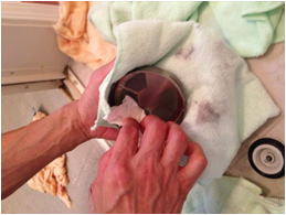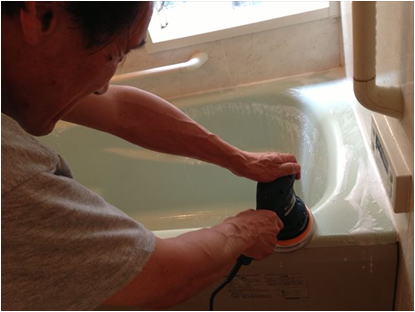ハンドポリッシャーによるバフ。傷に入り込んだカビなどを傷とともに研磨